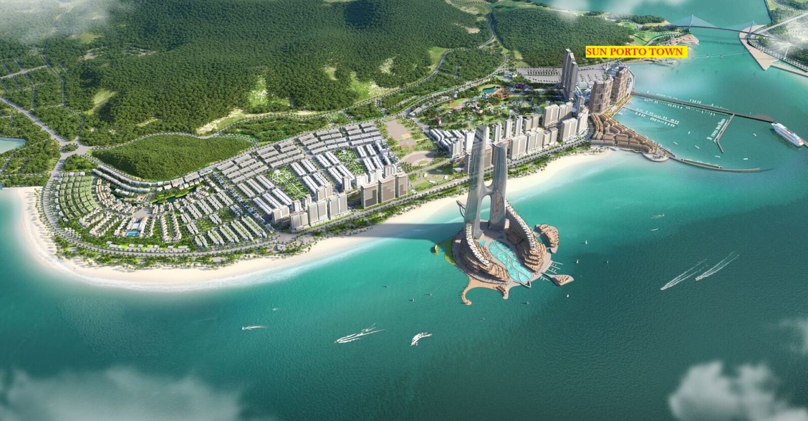 Sun Porto Town là tổ hợp căn hộ nghỉ dưỡng cao cấp tọa lạc tại cảng tàu quốc tế Hạ Long, khu đô thị nghỉ dưỡng Sun Elite City, phường Bãi Cháy, thành phố Hạ Long, là kiệt tác bất động sản mang tầm vóc quốc tế của tập đoàn Sun Group. Với quy mô 1,2ha, dự án bao gồm hai tòa tháp 50 tầng, cung cấp 3.955 căn hộ sang trọng với tầm nhìn hướng quảng trường biển và Vịnh Hạ Long – kỳ quan thiên nhiên thế giới được UNESCO công nhận. Sun Porto Town Hạ Long không chỉ là nơi an cư lý tưởng mà còn là cơ hội đầu tư sinh lời bền vững, mang đến phong cách sống năng động, đa trải nghiệm và tràn ngập tiện nghi.